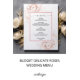 Carte de menu Budget Romantique rose Floral Élargissez votre expérience de repas mariage avec notre menu Mariage Budget Romantique Rose Roses. Combinant prix abordable et élégance, ce menu est conçu pour ajouter une touche de romantisme et de charme à votre journée spéciale à un prix abordable. Doté d'un bel agencement de roses roses, ce menu saisit l'essence du romantisme. Les fleurs délicates sont illustrées de teintes douces et pastel, créant une esthétique douce et accueillante. La carte est conçue selon un agencement propre et sophistiqué, assurant une présentation claire et attrayante de vos plats. Le script élégant et la police tourbillonnant (menu mot) rehaussent l'atmosphère romantique du menu. Personnalisez le menu avec vos plats mariages spécifiques, en vous assurant qu'il reflète l'expérience culinaire unique de votre journée spéciale.