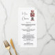 carte de menu de dîner de fête de Noël. Personnalisez et ajoutez un nom/événement, une date et le menu. Fond blanc, texte noir. Décoré avec un casse-noisette rose poussiéreux. Texte : Joyeux Noël