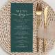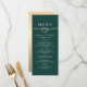 Élégante et raffinée, cette carte de menu de mariage vert émeraude présente un cœur de corde dorée et une typographie minimaliste pour une touche moderne. Une belle façon d'afficher votre repas de mariage, elle complète toute la suite et ajoute de la sophistication à chaque place de vos invités.