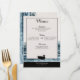Cette conception présente un bref moment capturé tout en marchant le long du lac par un jour à moitié dégelé au milieu de l'hiver. Tout le reste de la troupe s'était envolé un instant, mais celui-ci a choisi de rester un peu plus longtemps, sur le bord où la glace fondait dans l'eau du lac. Cette pièce est parfaite pour une soirée élégante, un événement professionnel ou un menu de mariage.