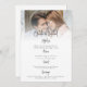 Disponible en version imprimée ou numérique. Carte de menu de mariage bohème script avec superposition de photo Un design minimaliste entièrement personnalisable avec votre photo derrière une couche teintée dégradée, vos noms et détails de menu. Facile à personnaliser avec votre photo et vos mots préférés.