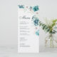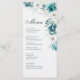 Présentez votre menu de réception avec style avec cette carte de menu de mariage botanique sarcelle. Les fleurs sauvages aquarelles et les accents botaniques doux encadrent le design, tandis que la typographie élégante garde la mise en page raffinée et facile à lire.
