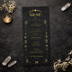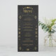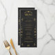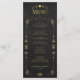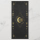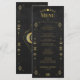 Cette carte de menu de mariage noir et or Celestial Gothic présente des détails élégants sur les phases lunaires et des accents célestes géométriques structurés dans un or antique sur un fond de charbon riche.