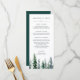 Notre menu de mariage rustique élégant présente vos plats de départ, vos entrées et vos desserts, accentués d'une rangée de pins aquarelles en vert chasseur et vert forêt. Coordonne avec notre collection de mariage Timber Grove.
