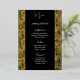 Cette carte de menu de mariage est présentée dans une élégante impression florale noire et or, écriture et texte standard de couleur blanche.