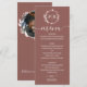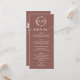 Une simple carte de menu de mariage en terre cuite avec un monogramme en faux feuillage chic. Facile à personnaliser avec vos détails. Carte de menu de mariage bohème moderne modifiable, faire-part de mariage avec photo de couronnes, personnalisable, police calligraphiée manuscrite, simple, élégante.