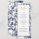 Carte de menu de mariage floral bleu minuit et or