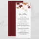 Habillez vos tables de réception avec cette carte de menu de mariage floral automnal bordeaux. Parfaite pour les mariages d'automne, cette conception présente de riches fleurs bordeaux et un script élégant — idéal pour les célébrations rustiques, bohèmes ou de style vignoble. Parcourez la collection complète pour les pancartes, invitations et cartes de placement assorties.