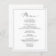Carte de menu de réception de mariage simple et él