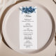 Cette carte de menu florale flue moderne est parfaite pour un mariage de destination. Cet élégant design floral peint à la main présente des fleurs gracieuses bleues, bleues foncées et indigo aux feuilles verts, représentant une beauté naturelle majestueuse. Ce menu peut être utilisé pour une réception de mariage, un dîner de répétition, une douche nuptiale ou tout événement.