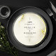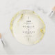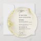 Cartes de menu du Cercle Mariage Islamique en Marbre Or Luxueux. Ce menu mariage rond est un véritable showstopper ! Le devant a une belle texture de marbre doré arrière - plan avec élégante calligraphie noire. Il commence par une phrase arabe 'wa khalaqnakum azwaja' (signifiant 'Et nous vous avons créé par paires'), suivie par les noms du couple, la date du mariage, et le lieu. Le dos est également en marbre doré, et il affiche élégamment "The Menu" en haut. Le menu lui-même est magnifiquement présenté en calligraphie dorée, listant tous les délicieux entrées, plats et desserts. C'est une touche vraiment spéciale pour votre célébration mariage.