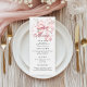Ajoutez une touche de sophistication à votre fête d'anniversaire de Quinceañera avec cette carte de menu Coquette à thème arc rose. Dotée d'un design élégant avec des fleurs sauvages roses doux, des perles délicates et des papillons gracieux, cette carte de menu complète magnifiquement votre décor d'évènement tout en présentant vos choix de repas ou de desserts dans le style. Parfait pour une fête de Quinceañera, 16 ans de Sweet ou toute fête d'anniversaire élégante, cette carte de menu coordonne avec les invitations, décorations et articles de fête de Quinceañera inspirés de la coquette. Le petit détail chic rose de l'arc ajoute un charme féminin et intemporel que les clients adoreront. Détail inoubliable pour votre salle de bal royale, votre fête du jardin ou votre célébration fantaisiste, cette carte de menu complète non seulement votre cadre de table mais sert aussi de garde de votre journée spéciale.