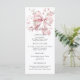 Carte de menu Elégant Coquette Rose Bow Pearls