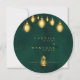 Royal Emerald Green Golden Lights Round Mariage Cartes de menu. Cette carte ronde mariage est comme un petit morceau de magie ! L'avant a un bel arrière - plan vert émeraude avec des lumières dorées scintillantes au-dessus, lui donnant une sensation magique. Les noms du couple sont écrits avec élégance, ainsi que la date du mariage et le lieu. Le dos est également vert émeraude, avec les mêmes lumières dorées enchanteresses. En haut, on peut lire "The Menu" dans une belle police. Vous trouverez ci-dessous une liste de tous les plats délicieux, des entrées aux desserts, le tout écrit en or élégant. C'est une touche vraiment spéciale pour votre célébration mariage.