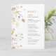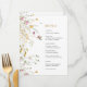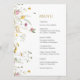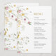 Cette carte de menu romantique présente des fleurs sauvages roses et jaunes aquarellées, de la camomille rustique, des feuilles de verdure et des brindilles.