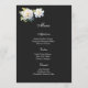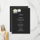 La carte de menu est présentée avec une belle fleur de gardenia sur le papier à carte de signature de couleur noire. Texte script et standard en couleur blanche. Personnalisez les éléments de menu et changez les éléments à votre guise avec ce modèle. Impression sous licence