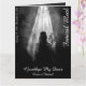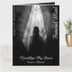 Ce menu funéraire présente un design moderne et élégant foncé avec une bordure blanche à l'avant et à l'arrière. La personne entre dans la lumière - au revoir ma chère Les noms, le texte et la date peuvent être customisés dans le modèle. Conçu par pASob-dESIGN.