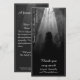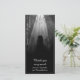 Ce menu funéraire présente un design moderne et élégant foncé avec une bordure blanche à l'avant et à l'arrière. La personne entre dans la lumière - au revoir ma chère Les noms, le texte et la date peuvent être customisés dans le modèle. Conçu par pASob-dESIGN.