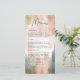 Carte de menu Mariage Abstraite moderne dans une combinaison de brassées orange brûlée, vert forêt et miel or couleur aquarelle.