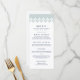 Notre menu de mariage élégant vous propose des entrées, des entrées et des desserts en bleu marine, riche et classique, accentué d'une bordure géométrique d'inspiration marocaine le long du haut en bleu pastel et blanc éthérée. Coordonnées avec notre collection de faire-part de mariage arabesques à Mist. Utilisez les champs modèle pour ajouter les informations de votre menu, puis cliquez sur "Customiser" pour repositionner les éléments si nécessaire. Besoin d'aide ? Contactez-moi via le lien "Demandez à ce concepteur" sur cette page.