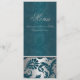 Cette élégante carte de menu argent et damas turquoise sur papier de base correspond à l'invitation et d'autres éléments présentés ci-dessous. Si vous avez besoin d'autres articles correspondants, veuillez envoyer votre demande par courriel à niteowlstudio@gmail.com.