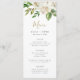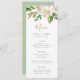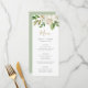 Cartes de menu mariage personnalisées. Utilisez les outils de conception pour personnaliser la mise en page, les couleurs arrière - plans et le texte avec les détails du menu mariage. Cet élégant design présente un bouquet floral aquarelle en vert et blanc aux accents de feuille d'or imitation.
