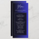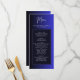 Les "Blue Mariage Menu Cards" sont des cartes utilisées par un mariage qui sont conçues avec un thème bleu. Les cartes de menu sont généralement placées à chaque table lors d'une réception de mariage pour informer les clients sur les options de nourriture et de boisson qui seront servis pendant le repas. L'incorporation d'un thème de couleur spécifique, comme le bleu, dans la conception de ces cartes de menu peut contribuer à améliorer l'esthétique et la décoration générale de la réception de mariage. Le bleu évoque le calme, l'élégance et le raffinement. En fonction de la nuance de bleu que vous choisissez, il peut également représenter différentes émotions. Des tons bleus plus clairs peuvent donner un sentiment de sérénité et de tranquillité, tandis que des tons plus profonds peuvent évoquer une atmosphère plus formelle et raffinée. Les cartes du menu doivent indiquer clairement les plats et les plats qui seront servis pendant le repas. Cette information pourrait être présentée de manière claire et organisée, éventuellement avec des rubriques pour différents plats (hors-d'oeuvre, plat, desserts, etc.). En incluant de brèves descriptions de chaque plat, vous pouvez aider les clients ayant des restrictions ou des préférences alimentaires. Comme les cartes du menu seront placées sur les tables avec d'autres éléments de décoration, assurez-vous que la couleur bleue des cartes du menu complète le jeu de couleurs et les décorations utilisées dans le lieu de réception du mariage.