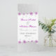 Carte de menu mariage couleur violet gris argenté blanc, avec bande ondulée gris argenté avec étoiles et violet élégants flocons de neige. Texte en gris et violet. Un design élégant parfait pour vos mariages d'hiver, de décembre ou de Noël. Moderne et contemporain mais adapté pour un mariage traditionnel. Ce design élégant et élégant peut être utilisé pour d'autres occasions spéciales comme des fiançailles ou des anniversaires.