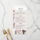 Voici notre menu de mariage Blush Pink moderne et personnalisable. Ce design élégant de notre collection Blush Pink présente des fleurs blanches et roses claires, une combinaison d'un élégant lettrage classique, jumelé à une police de script moderne. Parfait pour toute saison. Pour effectuer des modifications personnalisées, sélectionnez Personnaliser -> Modifier à l'aide de l'outil de conception.
