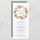Elégante carte de menu de mariage personnalisée avec vos noms encerclés par une couronne de fleurs d'aquarelle, succulents, et feuilles dans les tons rose roux, pêche, orange, crème, vert & marron. Personnalisez les menus personnalisés de mariage en ajoutant les détails de votre menu mariage ci-dessous. Le menu revient à un arrière - plan vert solide avec de l'espace pour le texte et les photos. Conçu pour coordonner avec notre collection de mariages de fleurs de automne rustique Watercolor.