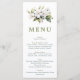 Ajoutez une élégance naturelle à votre réception de mariage avec cette carte botanique, avec des fleurs blanches délicates et un feuillage vert luxuriant aménagé avec art sur un arrière - plan blanc immaculé. La disposition raffinée utilise des polices serif classiques pour une présentation sophistiquée et facile à lire de votre repas de fête, de l'entrée au dessert. Parfait pour les mariages de jardin, les réceptions de printemps et d'été, ou tout événement romantique, ce menu floral est un joli complément raffiné, moderne, ou traditionnel décor de table, qui aide à votre journée spéciale se sentir vraiment inoubliable.