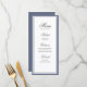 Carte de menu mariage classique avec nom de mariée et de mariée. Élégant script traditionnel en gris foncé dans une double bordure bleue. Bleu derrière. Pour ajuster la mise en page, cliquez sur Personnalisée, modifiez le texte, puis cliquez sur et faites glisser les sections de texte vers les emplacements souhaités. Utilisez Cntrl pour sélectionner et déplacer plusieurs sections à la fois.