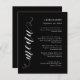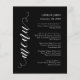 Créez une impression inoubliable lors de votre réception de mariage avec des cartes de menu mariage de script sophistiquées pour les réglages de plaque, conçues pour des événements haut de gamme et élégants. Ces cartes de menu sont parfaites pour les mariages de cravates noires, les réceptions de salle de bal luxueuses, les cérémonies de jardin romantiques et les mariages de grande destination. Dotés d'une typographie de script complexe, ils ajoutent une touche sophistiquée aux tables raffinées, complétant un décor élégant et des couleurs de haut de gamme. Que vous soyez l’hôte d’un rassemblement intime ou d’une célébration somptueuse, ces cartes de menu offrent une belle façon de présenter votre menu tout en rehaussant le charme et l’élégance de votre journée spéciale.