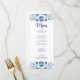 Carte de menu Mariage Fiesta Florale Bleu et Blanc