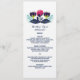 Moderne et élégant Funky Floral Mariage Menu Card avec un ensemble coloré de feuillage bleu foncé et perwinkle luxuriant et des fleurs stylisées rose magenta et violet. Ce menu audacieux et tendance peut être customisé avec vos détails mariages. Pour plus d'options de personnalisation, cliquez sur le bouton Customiser.