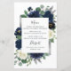 Carte de menu Mariage floral en ivoire bleu marine