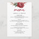 Carte de menu romantique mariage avec roses blush et gazon de pampas dans un style boho doux. Un complément parfait à votre table mariage, idéal pour des cérémonies de jardin rustiques, des réceptions en plein air ou des événements bohèmes élégants. Comprend des sections entièrement modifiables pour les entrées, la salade, le plat et le dessert. Coordonnée avec les invitations de mariage assorties, les cartes RSVP et la signalisation dans le même design floral.