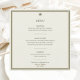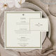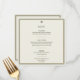 Ajoutez une élégance intemporelle à votre réception grâce à cette carte de menu Mariage ivoire et or Carré, qui fait partie de la collection de Mariages frontière ivoire et or. Doté d'un arrière - plan en ivoire raffiné avec une double bordure en or et en vert palmier, et d'un subtil emblème de palmier tropical, cette carte allie sophistication classique et charme de destination sobre. L'aménagement propre présente vos entrées, plats, desserts et note de remerciement dans une typographie moderne et facile à lire, ce qui en fait à la fois élégant et fonctionnel. Les noms des couples et la date du mariage en bas ajoutent une touche de finition personnalisée, créant ainsi un véritable souvenir pour les invités. Conçu pour s'harmoniser harmonieusement avec les invitations de mariage, les cartes RSVP, les cartes de détails, les programmes et les notes de remerciement, cette carte de menu vous assure que toute votre suite de papeterie se sent joliment cohésive. Idéal pour les mariages de destination tropicale, les célébrations de villégiature, les réceptions de jardin et les événements élégants de salle de bal. Disponible dans les options de conception carré et 5x7, offrant aux couples la flexibilité de créer une suite de papeterie mariage cohérente et élevée.