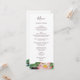 Cette carte mariage moderne présente une fleur de lotus d'aquarelle sur un arrière - plan blanc. Avec des noms de mariée et de mariée personnalisés, la date du mariage et un texte de menu personnalisé. À l'arrière se trouvent les initiales à modifier.