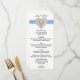 Accentuez votre décor en ajoutant une carte menu. Alors que vos invités attendent avec impatience l'entrée de la mariée ou la présentation de l'invité d'honneur, ils peuvent trouver une carte de menu dans leur cadre, ajoute une touche agréable. Personnalisez et créez votre menu en ajoutant et en modifiant le texte dans les champs fournis. Vous pouvez modifier le style de police, la taille et la couleur, le type de papier.