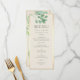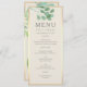 Elégante carte de menu de mariage avec une douce aquarelle feuillage et des bordures d'or faux sur un arrière - plan crème. Une façon élégante de présenter vos choix de cours pour un jardin, une réception de mariage rustique ou extérieure.