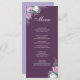 Cette carte de menu mariage violet foncé présente des pivoines d'aquarelle blanches et violettes, de la lavande, des formes géométriques et une élégante typographie moderne. Idéal pour un mariage extérieur. Trouvez les articles correspondants dans Lavender Purple Floral Mariage Collection.