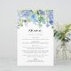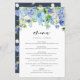 Carte de menu Mariage Watercolor Blue Hydrangeas