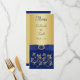 Cette carte de menu à fleurs d'or et de bleu roi, élégante et abordable, comporte un ruban IMPRIMÉ et un médaillon d'IMPRIMÉ bleu et or, qui correspond au faire-part de mariage ci-dessous. Il est conçu sur une carte à rack avec un avant brillant, et fini mat sur le dos. Si vous désirez une carte de menu sur papier d'invitation pour correspondre à vos invitations, ou si vous avez des demandes d'articles supplémentaires ou de modifications, veuillez envoyer un courriel à niteowlstudio@gmail.com avec votre demande.
