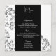 Ce modèle de carte de menu est affiché sur le papier de base avec une conception d'impression florale, script et texte standard en blanc. Couleurs Noir, Gris, Blanc Customisez les éléments du menu en cliquant sur le bouton customiser, recherchez à droite et trouvez les cases appropriées pour modifier vos informations. Je vous souhaite de bons voeux pour votre jour de mariage. Image stock