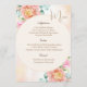 Ce modèle de carte de menu est parfait pour toute occasion spéciale que vous pourriez avoir et est présenté dans une belle impression florale dans des tons roses et pêche, le texte étant affiché dans des tons marron.