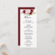 Cette carte rouge tropicale et romantique à la carte du dîner est parfaite pour un mariage rustique. Le design artistique bordo marsala présente des roses d'aquarelle, verts, roses, bordeaux et roux assortis de verdure bien disposés dans un bouquet de fleurs gracieux et radieux. Ce menu peut être utilisé pour une réception de mariage, un dîner de répétition, une douche nuptiale ou tout événement.