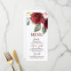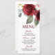 Cette belle carte de menu offre un rendu aquarelle de roses bourguignons surdimensionnés avec des touches de rougeur et de verdure. Un design merveilleux qui peut être utilisé toute l'année pour de nombreuses occasions. Customisez le libellé pour convenir à votre événement, et même changer le style de police et les couleurs si vous le souhaitez. Disponible en différentes formes et tailles.