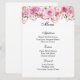 La carte de menu est présentée avec une impression d'art de jolies roses roses accentuées en haut de la carte, montrée sur le papier de base de la carte blanche. Script et texte standard en noir. Customisez les éléments du menu en cliquant sur le bouton customiser modifier, recherchez à droite et trouvez les cases appropriées pour modifier vos informations. Je vous souhaite de bons voeux pour votre jour de mariage.