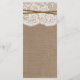La collection rustique horseshoe est un design étonnant avec un bel arrière - plan rustique effet burlap avec un ensemble romantique vintage effet dentelle blanche finie avec deux horseshoes et ficelles entrelacées de chance. Ces cartes de menu peuvent être personnalisées pour votre occasion spéciale et feraient le modèle parfait pour un menu rustique mariage, menu douche nuptiale, menu fiançailles, menu fête d'anniversaire et bien plus encore. *Veuillez noter que Zazzle ne vend que des produits imprimés, de sorte que cet article n'a pas de matériel réel de bracelet, dentelle, fer à cheval ou de ficelle.